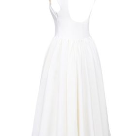 Aptly named, 'Debutante' is a stunning choice for special moments that call for grace and poise. Crafted from the most special Moire Satin, this full-skirted midi dress embodies the elegance of a modern-day princess. The backless design adds a daring twist, while the dropped shoulder detailing lends an air of effortless sophistication. With a flattering silhouette that flows beautifully, this dress is perfect for twirling on the dance floor or making a grand entrance at any event. The full tulle underskirt provides structure and looks so feminine as it peeps out whilst you move. It’s a graceful yet striking option for those who want to make a statement without saying a word.  WHERE TO WEAR: