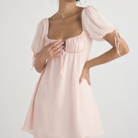 Short and sweet, our 'Princess' is a mini dress with an Empire cut and gathered bust. It's set in a beautiful pink quartz hue that's perfect for sunny days and has an ultra feminine swing shape. The pretty puff sleeves and short hemline add to the feminine vibe. Fully lined for comfort, it has a zip to the back for easy on. Style yours with delicate mules like 'Lucent' and a straw tote. The 'Regular Cup' option suits cup size A-C whilst the 'Bigger Cup' option suits cup size D-E.